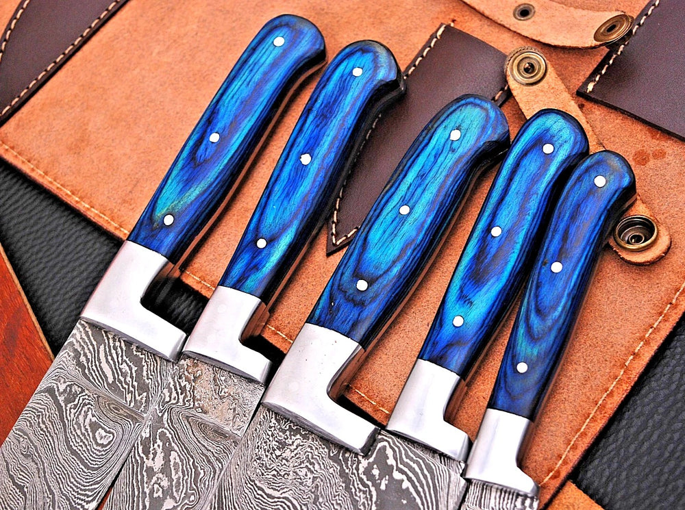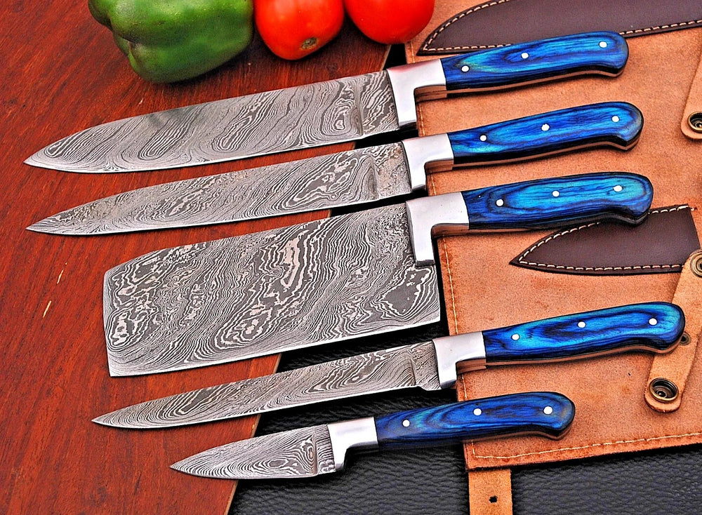 Custom Handmade Forged Damascus Steel Chef Knife Set – Wood & Steel Handle