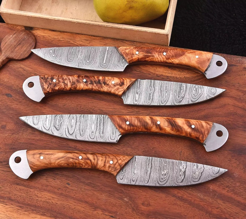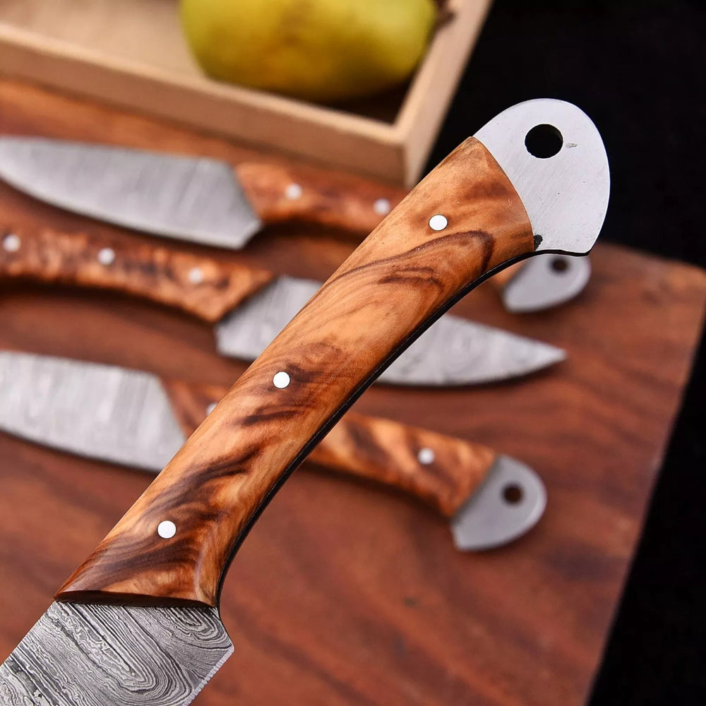Handmade Damascus Chef Knife Set – Professional Kitchen Knives with Wooden Handle