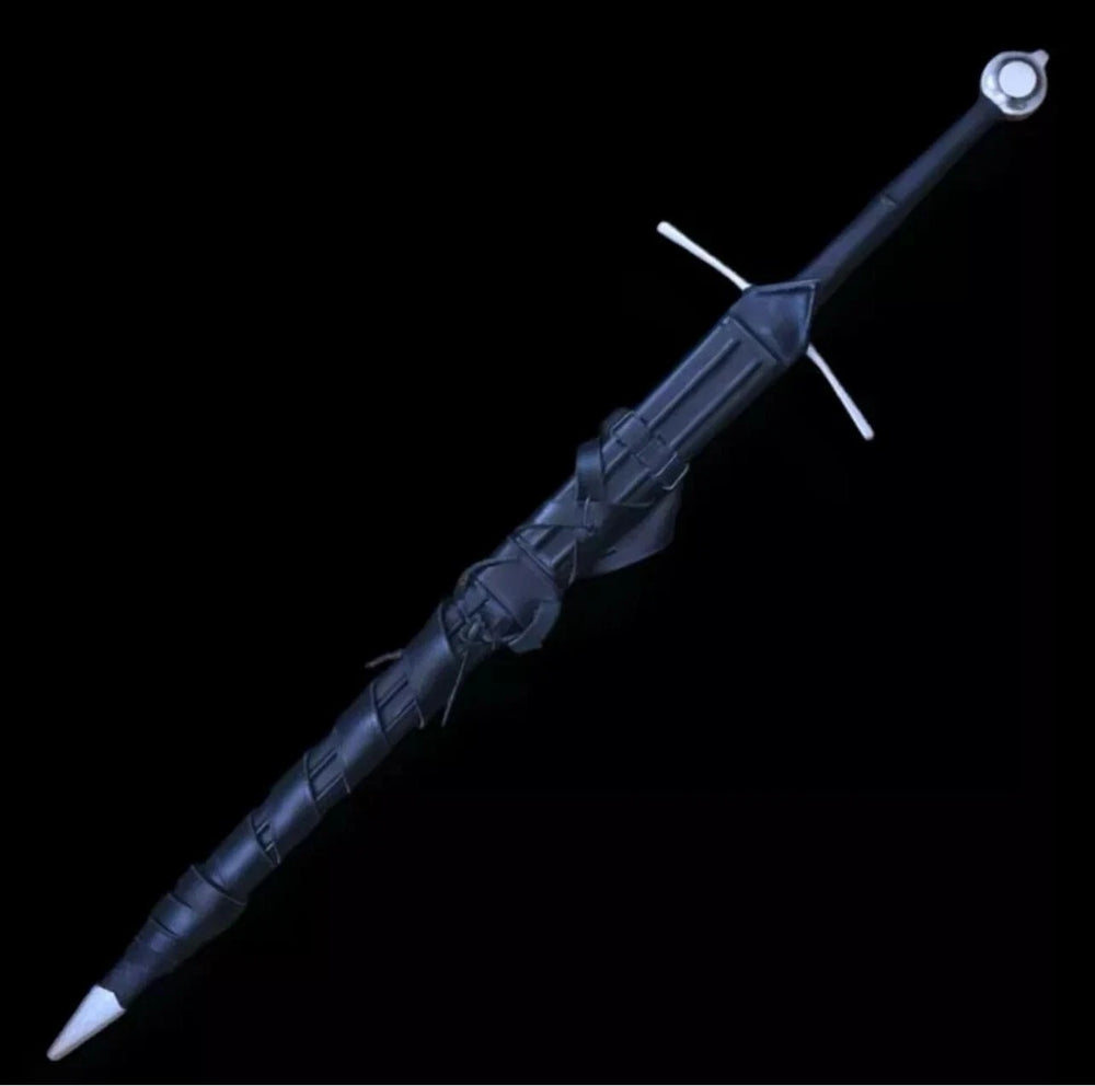 The sword features a leather-wrapped wood core handle with sturdy mild steel fittings, offering both comfort and control. With a total length of 40 inches and a striking 32.5-inch blade, it’s a remarkable piece that balances historical design with fine detail.