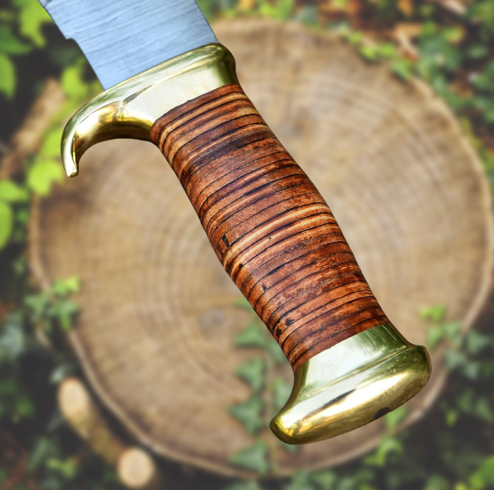 Elevate your gift-giving with our Handmade Damascus Bowie Knife, designed for those who appreciate superior craftsmanship. Featuring a forged Damascus steel blade and a premium leather handle with brass accents, this knife is a unique and practical gift. Perfect for birthdays, anniversaries, Father’s Day, or any special occasion, it can also be personalized with an engraving for a truly one-of-a-kind touch.